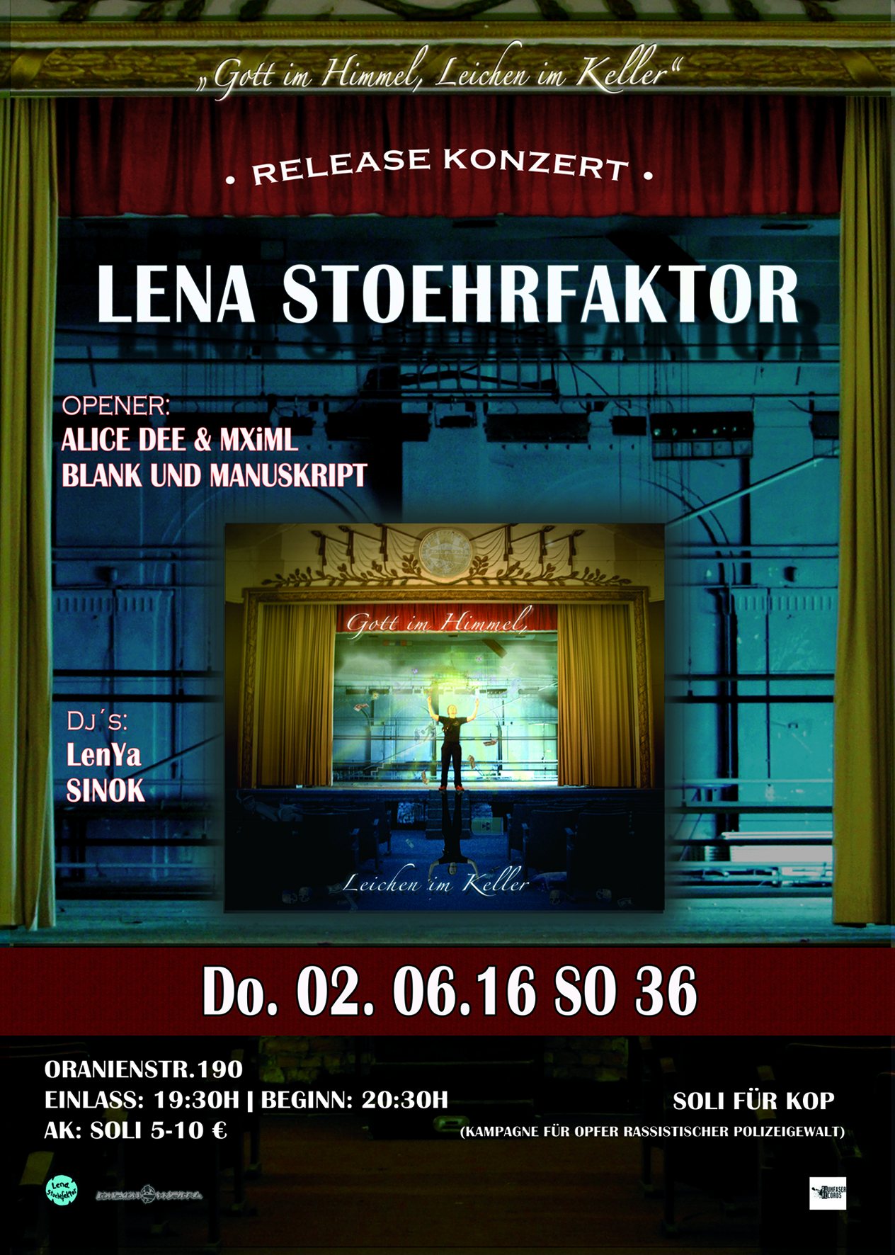Ich werde euch neue Tracks aus dem Album und ältere Hits präsentieren. Support machen Alice Dee und MXiML und Blank und Manuskript. Dj`s Lenya, Sinok. Soli für Kop (Kampagne für Opfer rassistischer Polizeigewalt). Wir freuen uns wenn ihr kommt.